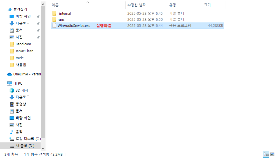 아까 폴더에 interception폴더 말고 winaudioservice 폴더로 들어가면 실행파일있음.